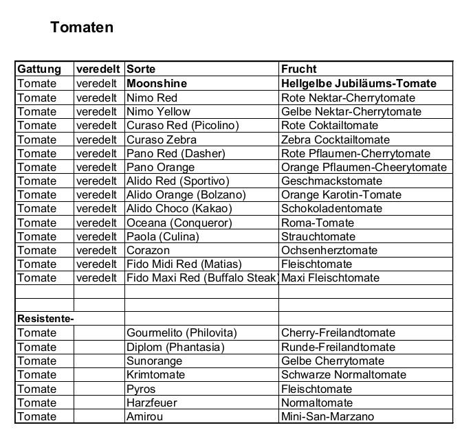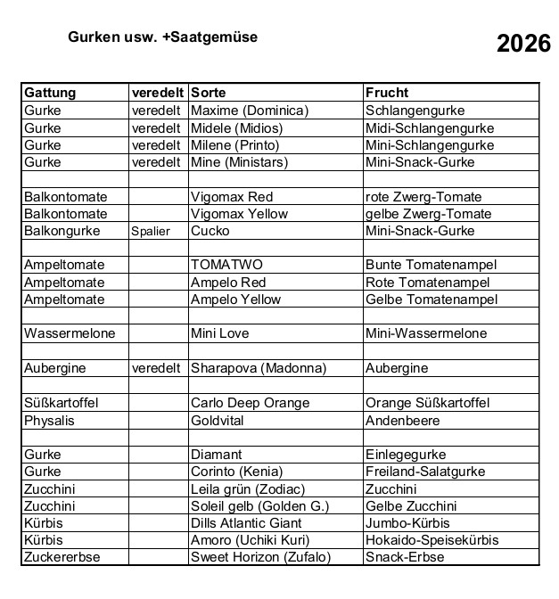 Diese Gemüsesorten sind bei uns erhältlich: